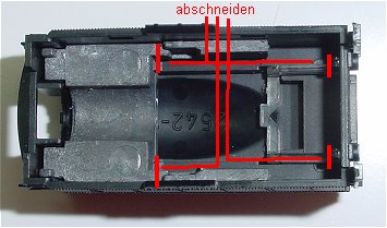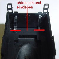 Das Tenderoberteil. Hier wird das Ballastblei an den roten Trennlinien abgeschnitten. Das hat keinen Einfluss auf die Zugleistung, da die