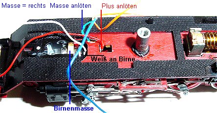 vorne und Pin 6 gelb ( hier grau wegen der Tarnung ) zum Tender an die Birne.