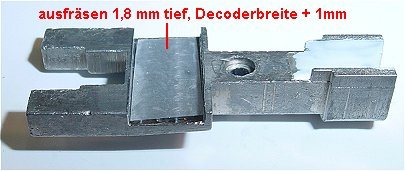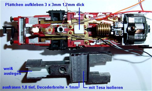 Lokgehäuse entnommen damit man das Ballastgewicht herausziehen kann. Hier wird ein Schlitz in der Decoderbreite plus 1mm Spiel eingefräst.