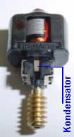Um den SMD Kondensator zu entfernen muss man die Kohlenhaltebleche abnehmen, Kondensator herausdrücken und Kohlenhaltebleche wieder