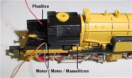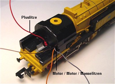 Diese Litze wird dann zusätzlich durch ein Loch im Inneren der Schleiferplatine nach hinten zum Decoder geführt.
