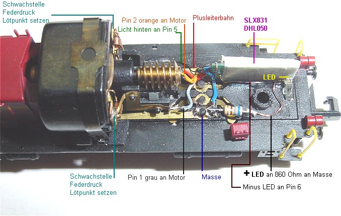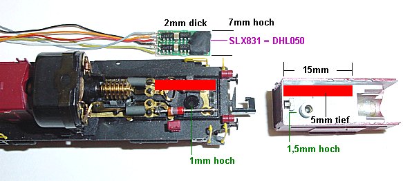 Umbauanleitung: Es passt ein Selectrix SLX 831 = DHL050, der Umbau ist schwierig und sollte nicht gerade die erste Digitalisierung sein.
