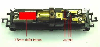 über den früheren Motorzuleitungsblechen entfallen. Die Spitzen werden abgeschnitten oder umgebogen.