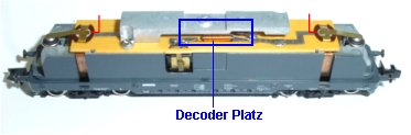 Gehäuse abnehmen. Brücke über der Platine abschrauben. In diesem Umbau soll der Decoder unter die Metallbrücke längsseitig