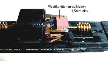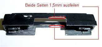 Aus dem Ballastblei im Wagengehäuse muss ein schmales Stück herausgefeilt werden damit das Gehäuse später über den