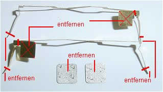 abgeschnitten. Dioden entfallen natürlich auch. Die Enden der Lampenfedern müssen um 2 mm gekürzt werden, damit sie