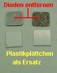 Aus dem Motoroberteil werden aus den beiden seitlichen Schlitzen die Diodenplättchen herausgezogen und durch gleich große