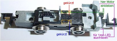 Federn am Motor abtrennen sowie Federn der Stromabnehmer an der gezeichneten Stelle abtrennen, sonst Kurzschluss.