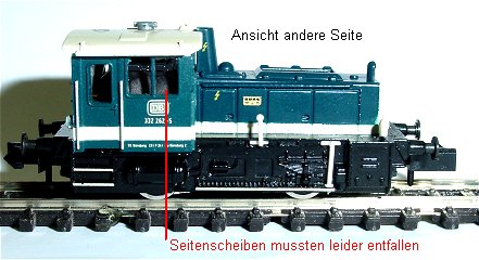 Hier im Bild ein Trix 66830. In diesem Umbau habe ich die Original Seitenfenster durch Transparentfolie ersetzt.