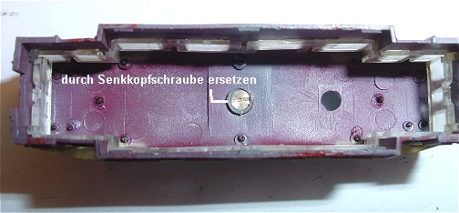 Die Flachkopfschraube wird durch eine Senkkopfschraube ersetzt. Vorher Loch etwas ansenken.