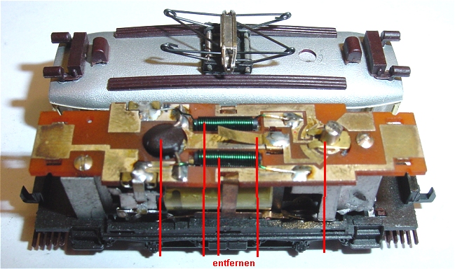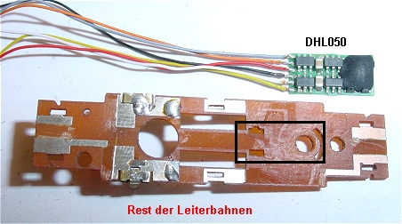 Dies sind die Leiterbahnrest welche stehen bleiben. Meine Lok hatte keine Beleuchtung trotzdem wohl mal eine vorgesehen war.