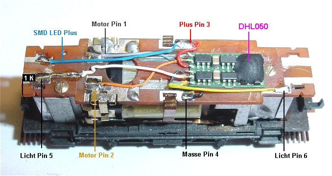 Der DHL050 ist aufgeklebt. Pin 1 ist links oben im Bild.