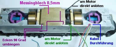herauskommen. Um den Decoder oben zu befestigen fertigen wir eine Halterung aus einem Stück Messingblech, 0,3 mm dick, in