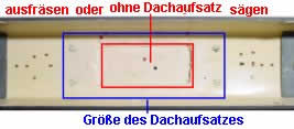 Zuletzt muß noch das Gehäuse oberhalb des Decoders ausgesägt oder ausgefräst werden. Zum Sägen kann man den Dachaufsatz