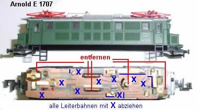 Gehäuse abnehmen. Eine Benutzung der Oberleitungsfunktion ist im Digitalbetrieb nicht mehr möglich.