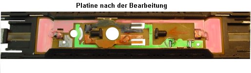 Platine eingebaut. Ich habe wegen besserer Stromübertragung die Federn der Platine auf den Schleiferplatinchen aufgelötet.