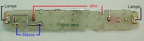 Platine durch Lösen von drei Schrauben abnehmen. Beide Drosseln sowie beide Dioden an den Lampen entfernen. Lässt man die