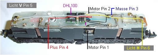 Pin 6 das gelbe Kabel Lampe hinten. Pin 7 am anderen Ende vom Decoder bleibt mangels Aufgabe frei.