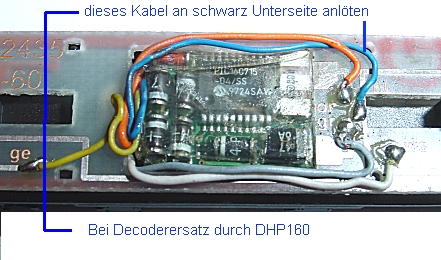 Diese Lok war bereits mit einem defekten DCC Decoder bestückt welcher gegen einen DHP160 getauscht wurde.