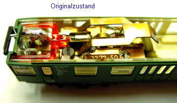 So ist der Originalzustand mit der Innenbeleuchtungsaufnahme. Der rote Lichtleitstab wird entnommen, die Birne ebenfalls