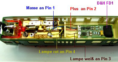 Umbauanleitung: Hier wird ein D&H FD1 Decoder benutzt. ( Digirail / Rautenhaus / Radtke )