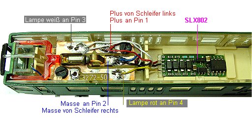Umbauanleitung: Hier wird im Gegensatz zum ersten Umbauvorschlag ein SLX802 Schaltdecoder Decoder benutzt der auch anders verdrahtet wird.