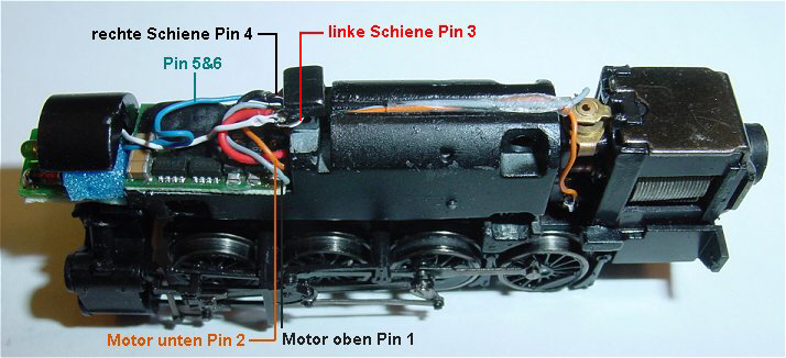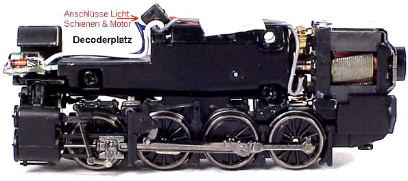 Der fertige Einbau. Decoder DHL161 ist mit Doppelklebeband fixiert. Damit man besser löten kann habe ich den Decoder erst