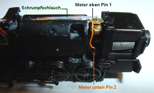 Die Motoranschlüsse und die Lichtanschlüsse sind gemeinsam je Seite verlötet und durch ein Loch je Seite eingesteckt.