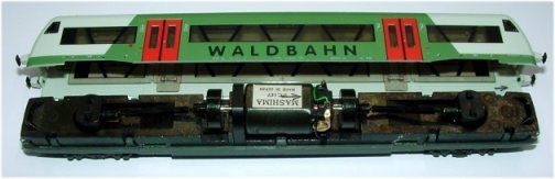 Gehäuse abnehmen, dazu erst die 4 Puffer herausziehen, dann Drehgestelle ausklipsen und markieren. Motorplatte mit Motor ab,