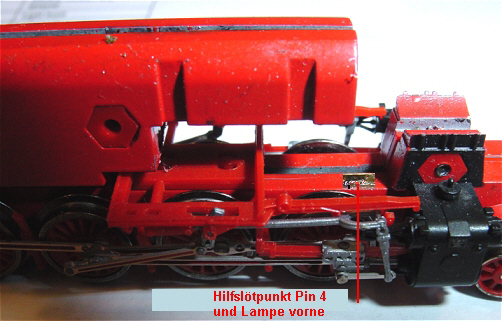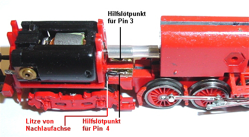 Litze an Radstromabnehmer Nachlaufachsen links angelötet. Unten wird Litze von Pin 4 , Litze von Radstromabnehmer