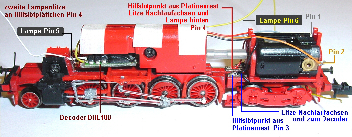 Bis auf die Lampenverdrahtung ist die Digitalisierung fertig. Wichtig ist, die Litzen des Nachlauf-Drehgestells nicht aus dem