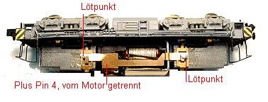 Die Massefeder wird auch so beschnitten, das der Motor keinen Kontakt mehr hat. Den abgeschnittenen Rest habe ich unter die