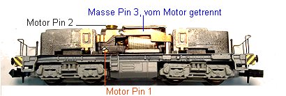 angelötet, dann das Gehäuse aufgesetzt und dann der Decoder quer auf den Motor geklebt und verdrahtet. Zum Schluss wird das