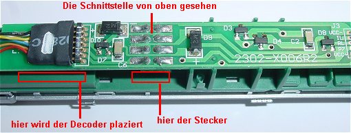 Nochmals zur Verdeutlichung der Anschluß an einem HO Decoder welcher von den Ausmaßen leider nicht hinein passt.