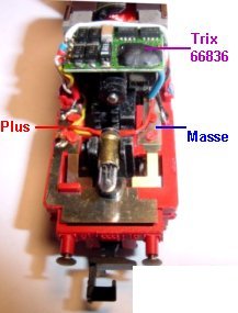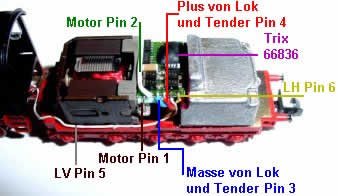 Diese Anleitung ist mit Trix 66836 im Tender quer hinter dem Motor. Es gibt die möglichkeit, den Decoder auf den Motor