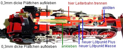 weggefräst. Man sieht es nach Aufsetzen des Lokgehäuses gar nicht. Probe fahren, und wenn alles stimmt werden die Litzen