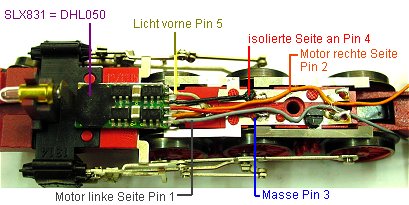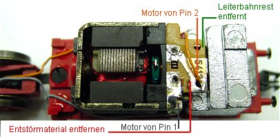 im Bild der rote Strich hinzeigt. Beide Kabel am Ende werden abgelötet denn die Decoderkabel zum Motor sind lang genug.