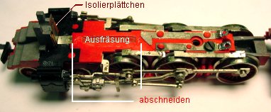 Bild die weißen Striche hinzeigen. Dann wird eine Ausfräsung in Decoder-Breite und -länge an der im Bild gezeigten Stelle