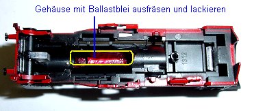 Das Gewicht im Tender bleibt wegen der Zugkraft hier erhalten. Man könnte auch einen DHL050 einbauen, der ist allerdings