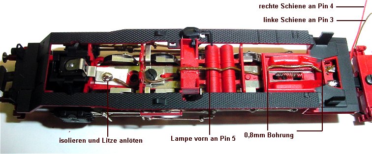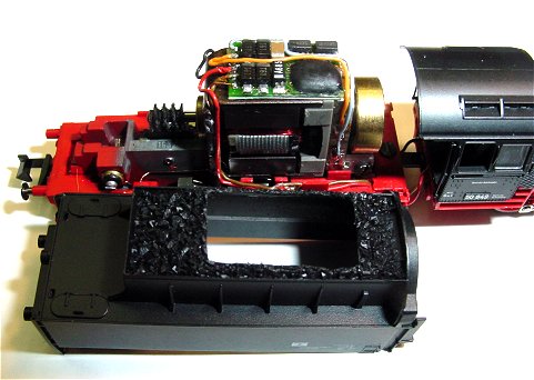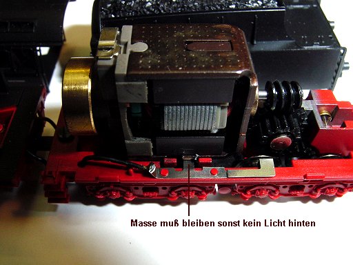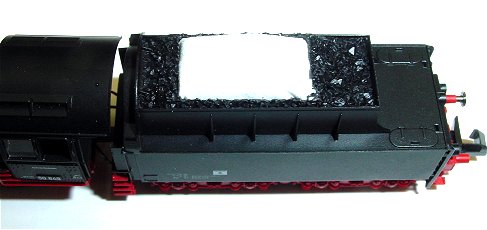 Umbauanleitung: mit Trix 66836 im Tender, das hintere Licht bleibt erhalten, damit kein Gewicht entfernt wird wurde eine "Aufkohlung" gemacht.