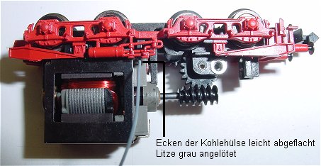 Aus dem Kohleeinsatz wird ein Stück herausgefräst, so das der Decoder hineinpasst. TenderGehäuse aufsetzen