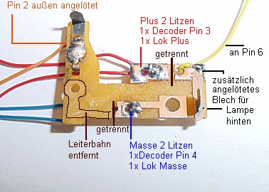 Die doppelten Litzen habe ich verlegt, um nicht zwei Litzen an den Decoder löten zu müssen.