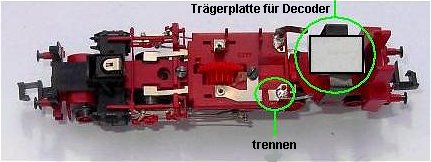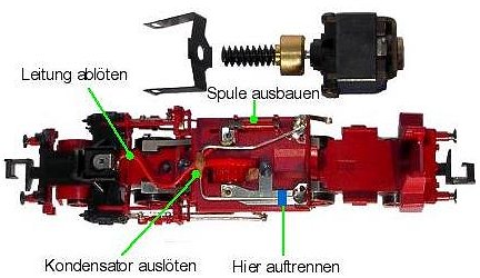 abkneifen). Dieser Anschluss wird nicht benötigt, da die Lok keine hintere Beleuchtung besitzt. Die Lok neu