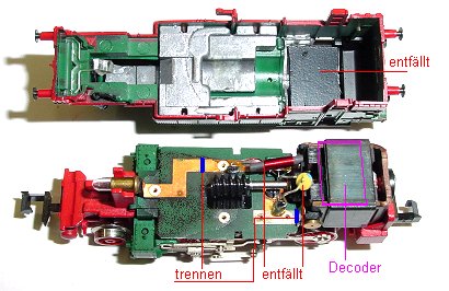Im Gehäuse entfällt das Ballastgewicht unter dem führerhausdach, im nächsten Bild schwarz.