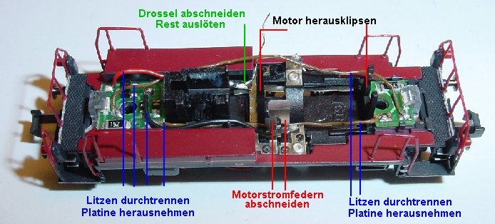 Umbauanleitung: hier mit DHL050 Selectrixdecoder über der Schnecke