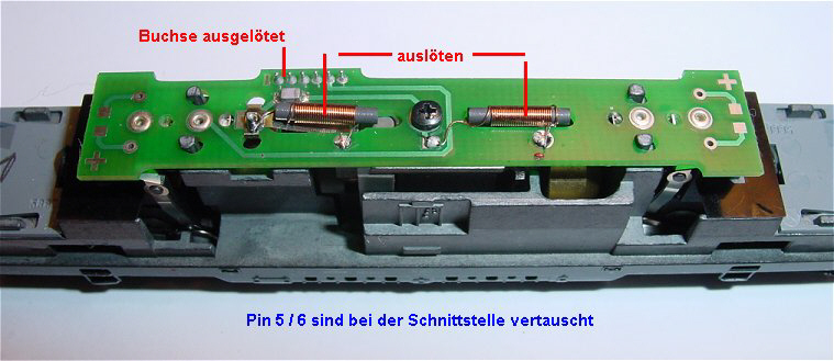Buchse aus der Platine auslöten und den Decoder an der Platine anlöten.