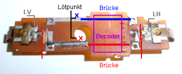 je eine Drahtbrücke über den Decoder wieder verbunden werden.