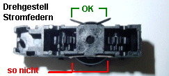 verschmutzt, die Stromabnahmefedern nicht blank, die Radinnenschleiferfedern der Stromabnahme haben nicht mehr