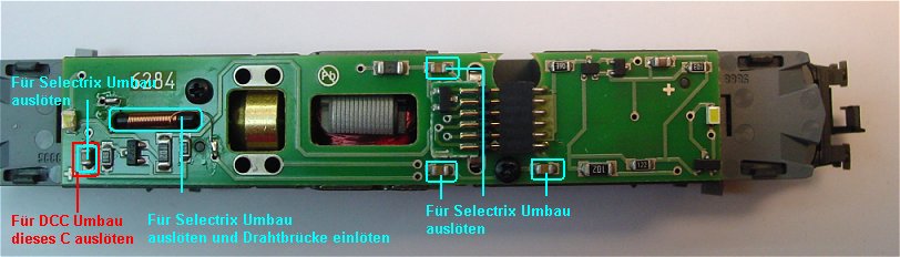 Programmierung auch unter DCC auftreten sollte man alle bezeichneten Teile auslöten wie im Selectrix-Umbau