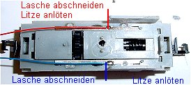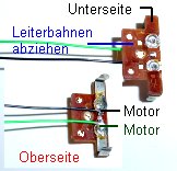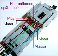 verlegt werden damit das Gehäuse später passt. Im LokGehäuse sind zwei Stege, die von oben auf den Motor dRücken.